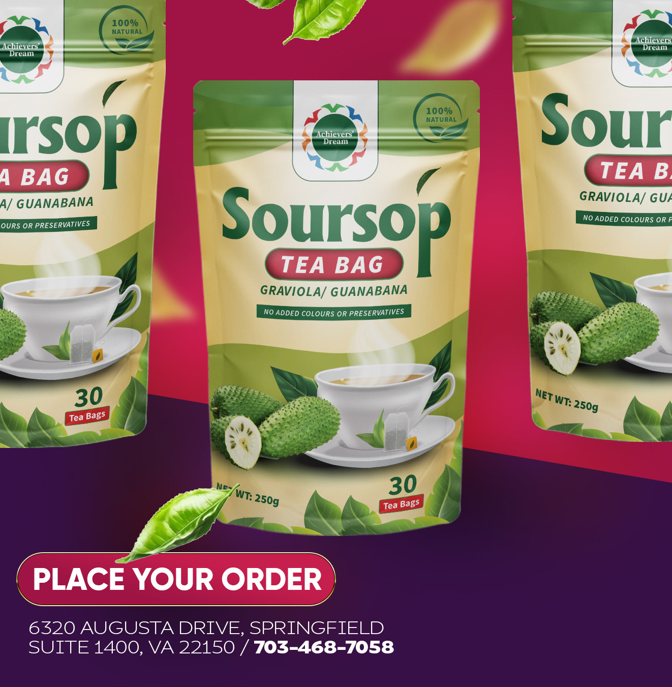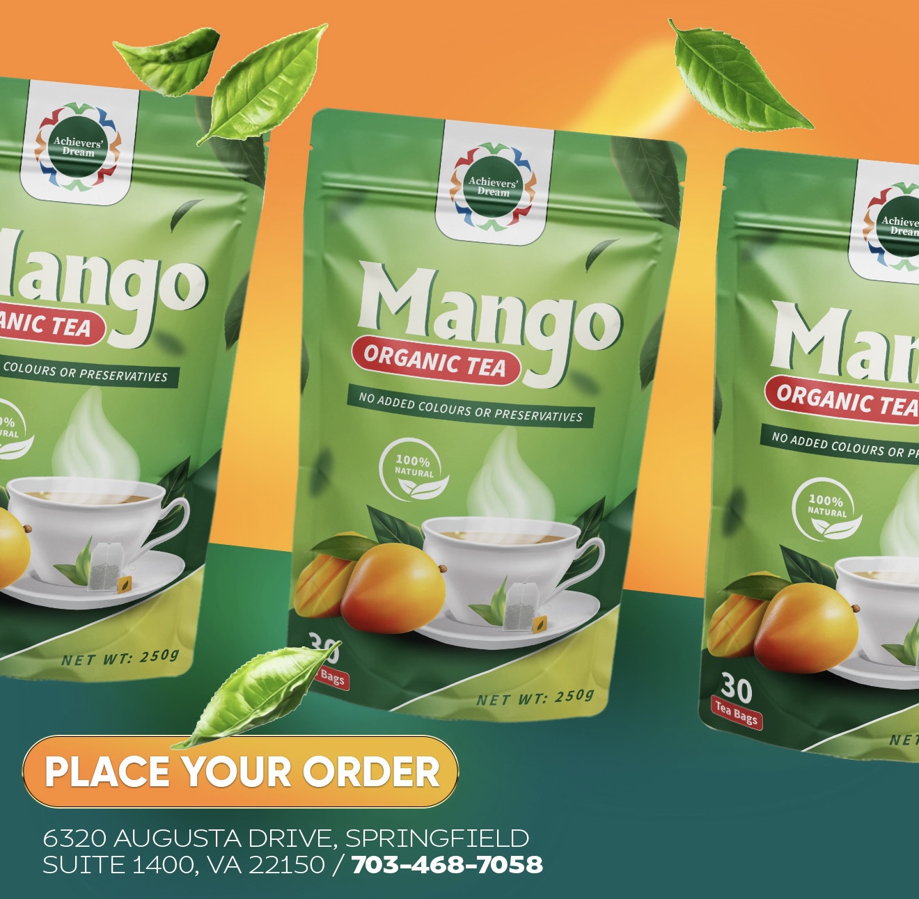 You can purchase Achievers Team Network Organic Teas locally in the DC, Maryland, and Virginia areas, or have them shipped directly to you. Visit us at 6320 Augusta Drive, Suite 1400, Springfield, VA 22150, or call 703-468-7058 to place an order and experience the rich flavors and benefits of our natural, Ghanaian-grown teas.